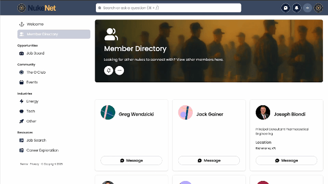 Join a verified, members-only network where you can meet other nukes, swap gouge, and build your post-Navy playbook.